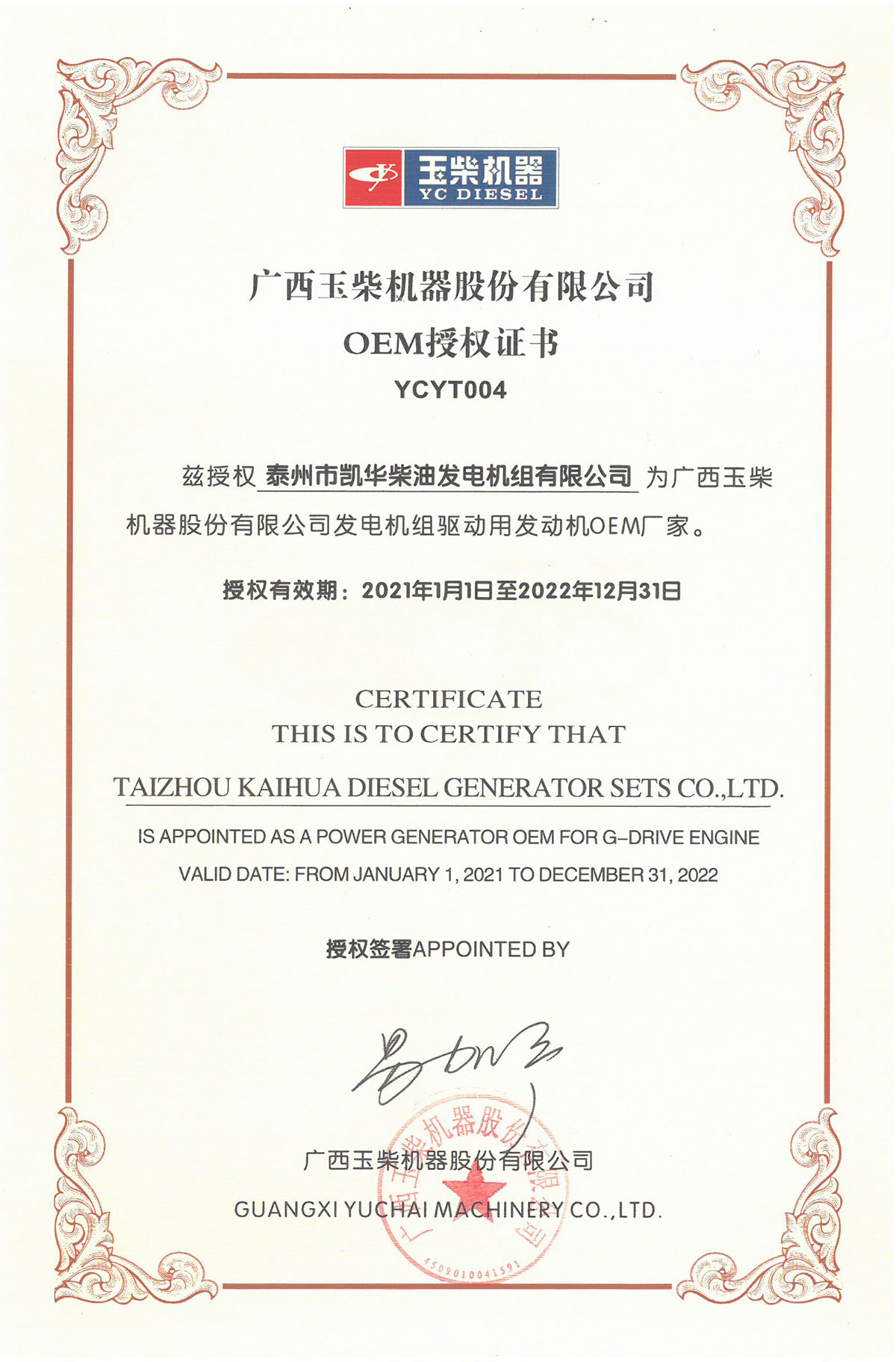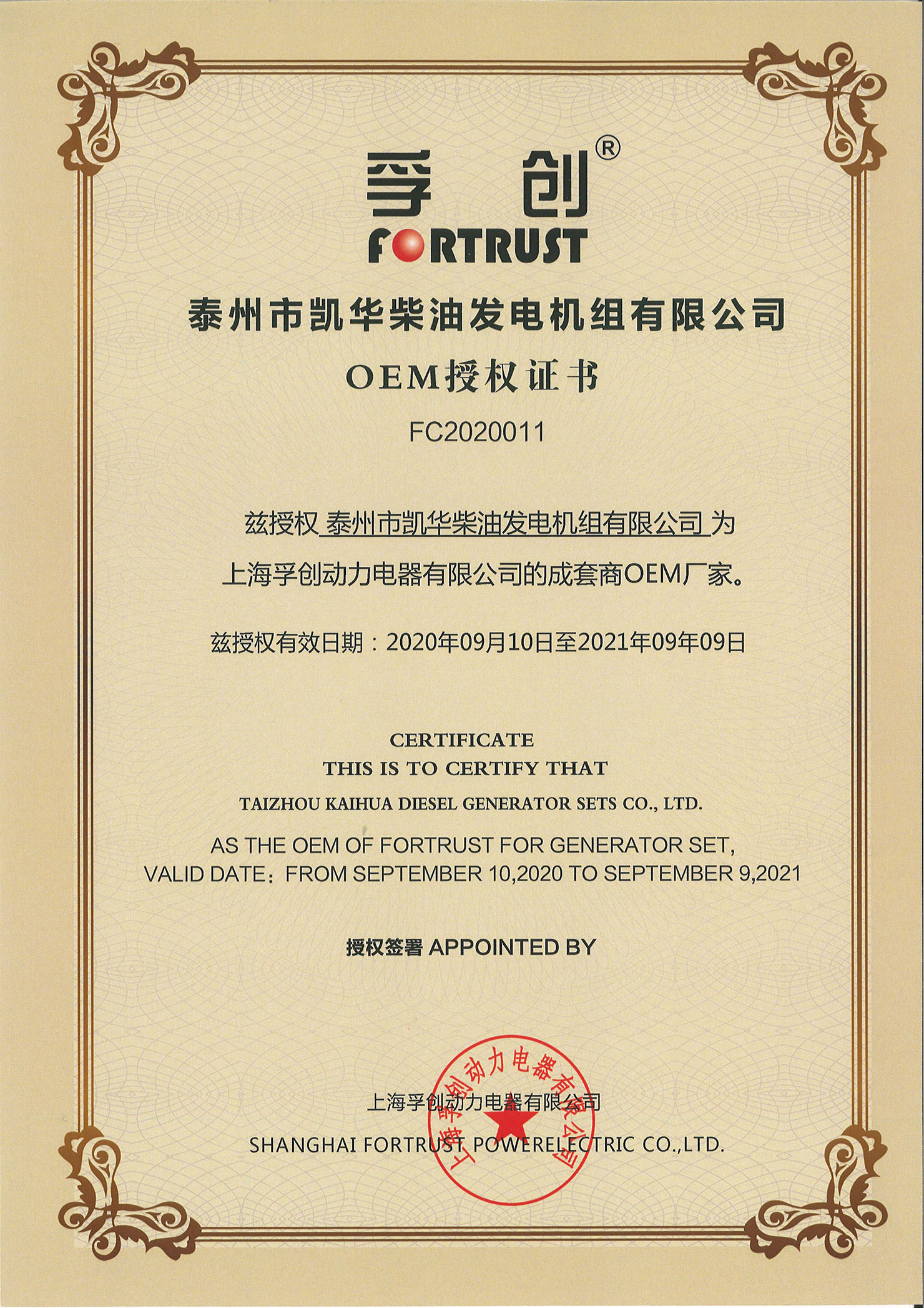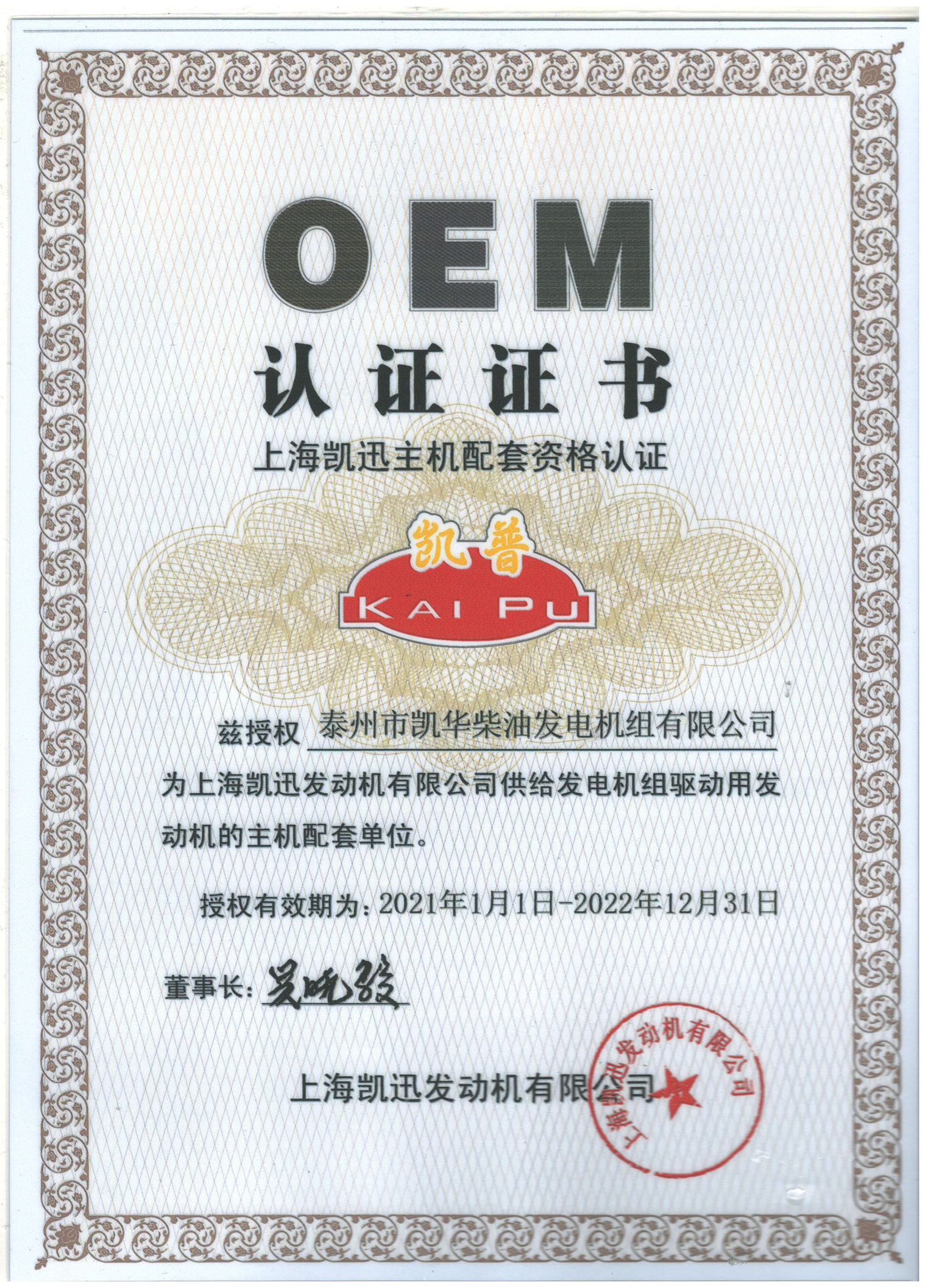 發(fā)電機(jī)組廠家凱華公司已先后通過ISO9001質(zhì)量認(rèn)證、泰爾認(rèn)證、ISO14001-2001環(huán)境管理體系認(rèn)證、GB/T28001-2001職業(yè)健康安全管理體系認(rèn)證,歐盟CE認(rèn)證、SGS認(rèn)證等。