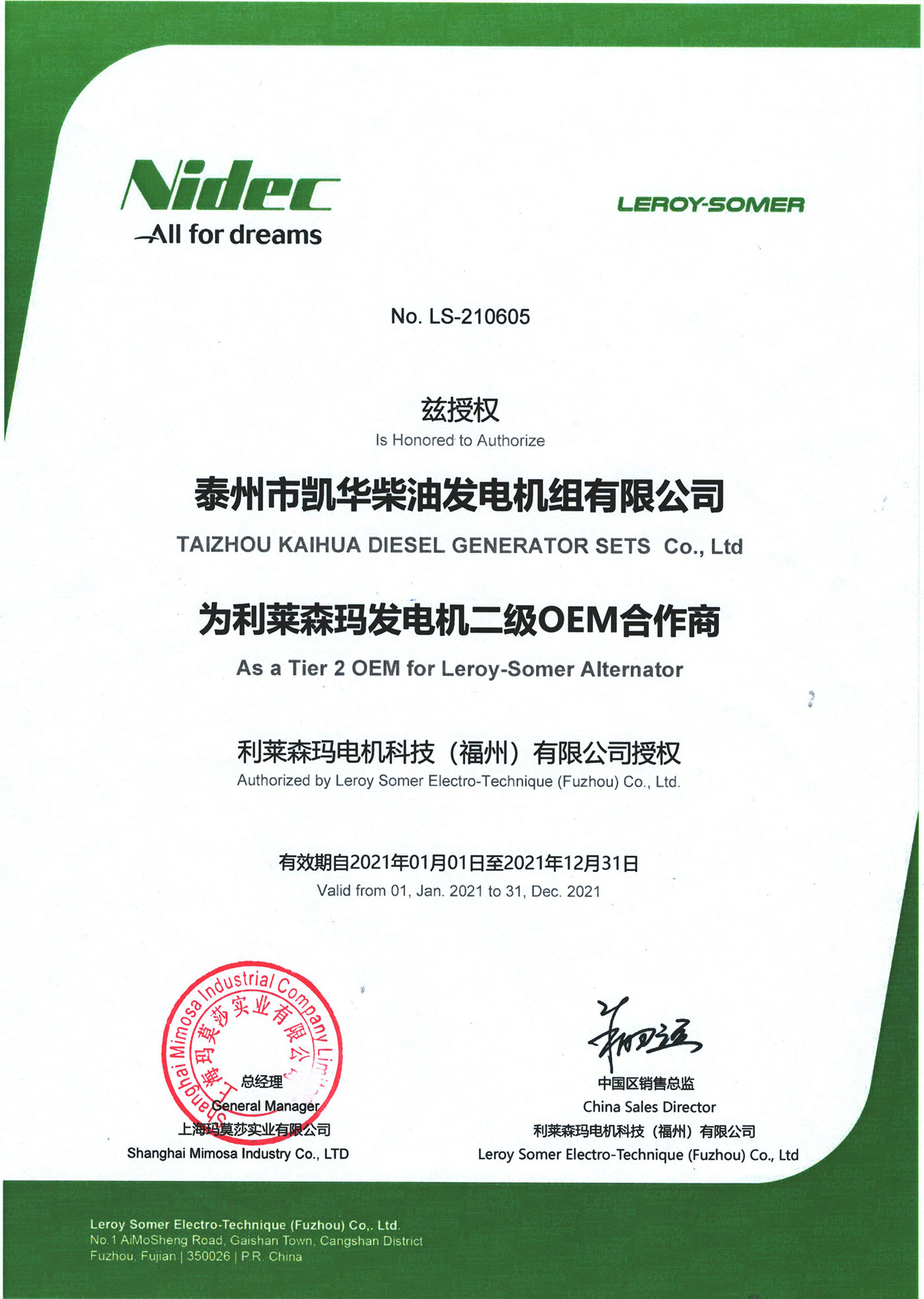 泰州市凱華柴油發(fā)電機(jī)組有限公司創(chuàng)建于2003年,是一家集柴油發(fā)電機(jī)組的研發(fā)、生產(chǎn)、銷售為一體的高新技術(shù)民營企業(yè),公司目前注冊資本金11800萬元人民幣,生產(chǎn)基地占地六十畝,現(xiàn)有各類高素質(zhì)員工一百多名,專業(yè)技術(shù)人員達(dá)46人,其中高級技術(shù)人員16人,年銷售額近6億元。公司主營產(chǎn)品:3~3000KW陸用柴油發(fā)電機(jī)組,15~600KW移動拖車電站,12~1000KW船用應(yīng)急柴油發(fā)電機(jī)組,各種靜音型、中高壓、多機(jī)并聯(lián)、燃?xì)獾忍胤N機(jī)組以及進(jìn)口系列柴油發(fā)電機(jī)組,可滿足不同客戶的不同電力需求,還可滿足用戶不同電壓、不同頻率的要求。
